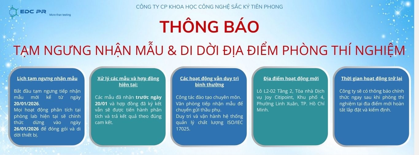 Năm 1997: Trung tâm Đào tạo và Phát triển Sắc ký (EDC–HCM) do TS. Diệp Ngọc Sương thành lập, với trên 40 năm kinh nghiệm giảng dạy, đào tạo và làm dịch vụ kiểm nghiệm, đã từng bước định hướng và đưa EDC-HCM là đơn vị đi đầu trong trong lĩnh vực kiểm tra chất lượng, đào tạo chuyên sâu, tư vấn hệ thống quản lý chất lượng, dịch vụ kiểm tra – bảo trì – hiệu chuẩn thiết bị phòng thí nghiệm. Các dịch vụ của EDC-HCM gồm: Đào tạo ngắn hạn cơ bản và chuyên sâu thuộc lĩnh vực PTN đặc biệt là lĩnh vực kiểm tra chất lượng như: GC, GC/MS, HPLC, LC/MS, AAS, hóa lý cổ điển Dịch vụ bảo trì – kiểm tra – hiệu chuẩn, thử nghiệm phương tiện đo, chuẩn đo lường Cung cấp các chương trình thử nghiệm thành thạo lĩnh vực hóa học và vi sinh Tháng 8/2020: Thành lập nên Công ty Cổ phần Khoa học Công nghệ Sắc ký Tiên Phong (EDC-PR) với các phương tiện, thiết bị máy móc chất lượng cao phục vụ cho việc kiểm tra chất lượng sản phẩm (thực phẩm, môi trường, vi sinh, …) cùng với đội ngũ kỹ thuật viên lành nghề, nhiều năm kinh nghiệm trong lĩnh vực kiểm tra chất lượng. Song song với dịch vụ kiểm nghiệm chất lượng sản phẩm, EDC-PR hợp tác với EDC–HCM mở các khóa đào tạo ngắn hạn và chuyên sâu thuộc lĩnh vực PTN đặc biệt là lĩnh vực kiểm tra chất lượng, giúp cho học viên được thực hành đi đôi với việc học lý thuyết trong quá trình đào tạo. Với phương châm: “Luôn tiên phong trong chất lượng dịch vụ” hân hạnh được phục vụ quý khách hàng.
